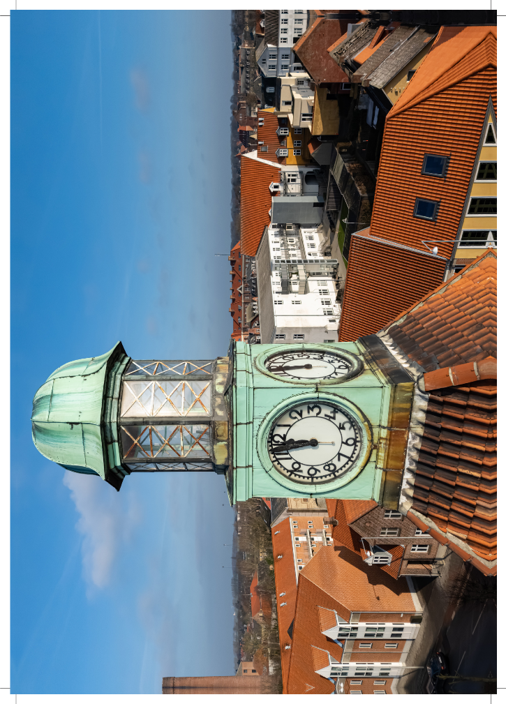 Förklaringen är, att när kniven skär så vrider sig hörnet en aning och vill skala av lite av kanten, tyvärr kan vi inte göra det på annat sätt. Ju tjockare häfte, desto större problem. Speciellt om det ska squarefoldas efteråt. Om hörnet redan är lite flossat blir det ännu värre när hjulet i squarefold-maskinen trycker in i ryggen på häftet.